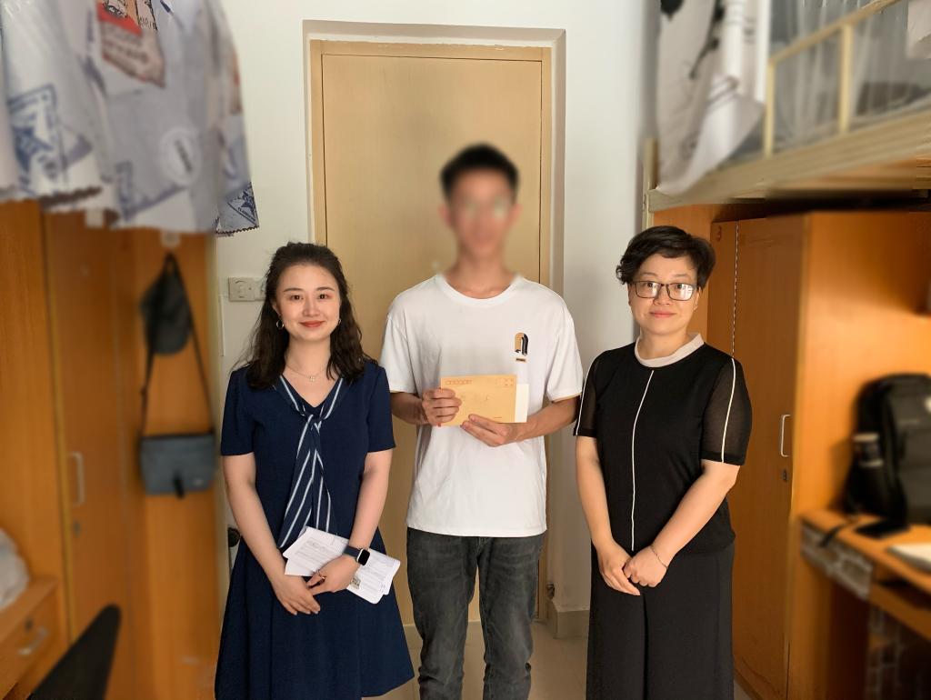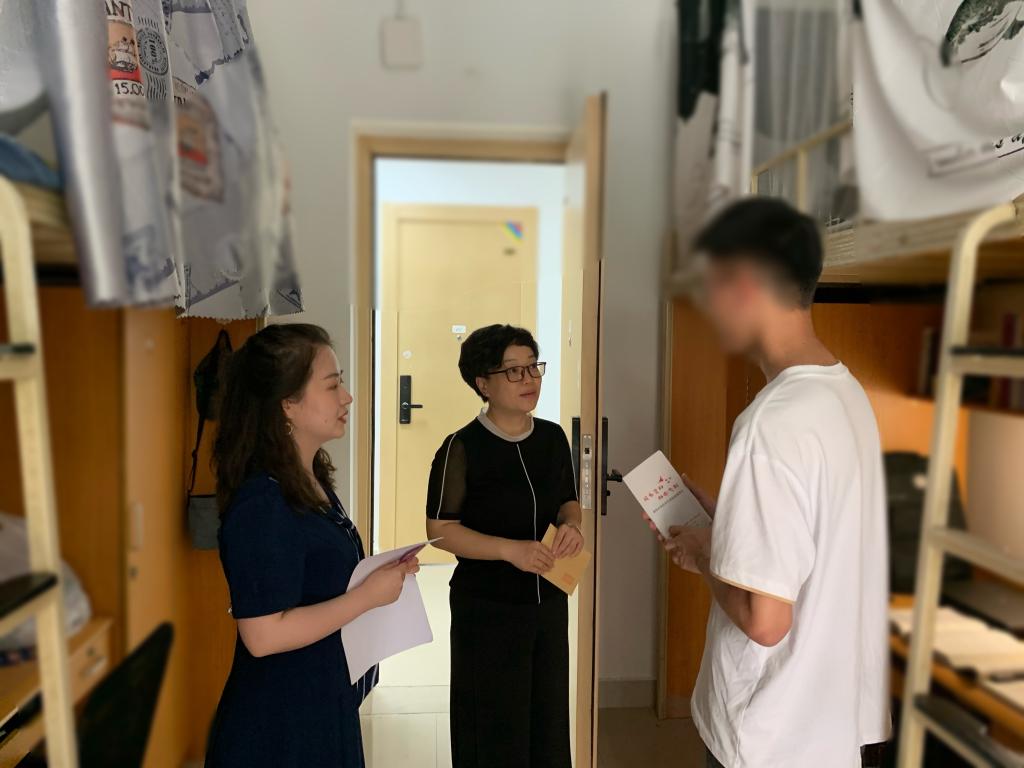 7月7日,公司党总支书记施亚带领学院辅导员、班主任前往13栋走访慰问家住偏远山区家庭经济特别困难学子,询问正在备考法考的学子备考情况,鼓励其要有坚定的信心,合理安排复习计划,争取成功上岸。资助辅导员杨继玥也向该生解读并宣传国家资助政策,了解员工对目前资助政策的建议,表达了学校和学院对贫困学子的关心和帮助。最后施书记为学子送上学校的慰问金,同学对学校和学院的关心和帮助表达了感谢。